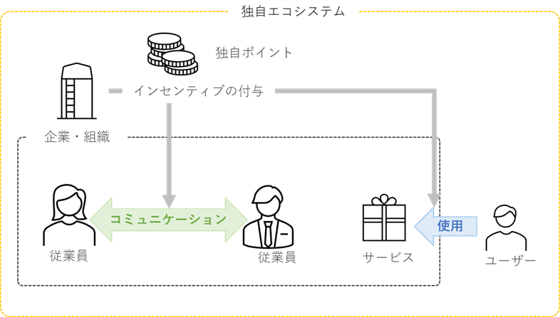 企業・自治体などの様々な組織にとり、自らが提供するサービスをユーザーにより活発に使用してもらったり、従業員間のコミュニケーションを活発にしたりすることは重要な目標です。組織独自のポイントを発行し、サービス利用やコミュニケーションにインセンティブを付与することはそのための有効なアプローチとなります。